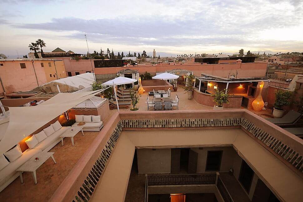 Les personnes ayant déjà visité le Maroc recommandent à leur amis, famille de réserver dans un riad pour un groupe de 15, 20, 25 ou 30 personnes dans le centre de la medina où proche de Guéliz-Hivernage, qui est une façon de s’imprégner de l’ambiance du pays. Différent d’un hôtel, un riad proche de la place Djemaa El Fna vous permettra de vivre une véritable expérience marocaine. Notre riad est tenu comme un hôtel-boutique pour un groupe limités de personnes. Notre hébergement à marrakech dispose de 10 chambres et 15 à 20 chambres avec nos deux partenaires voisins pour un service personnalisé et attentionné.